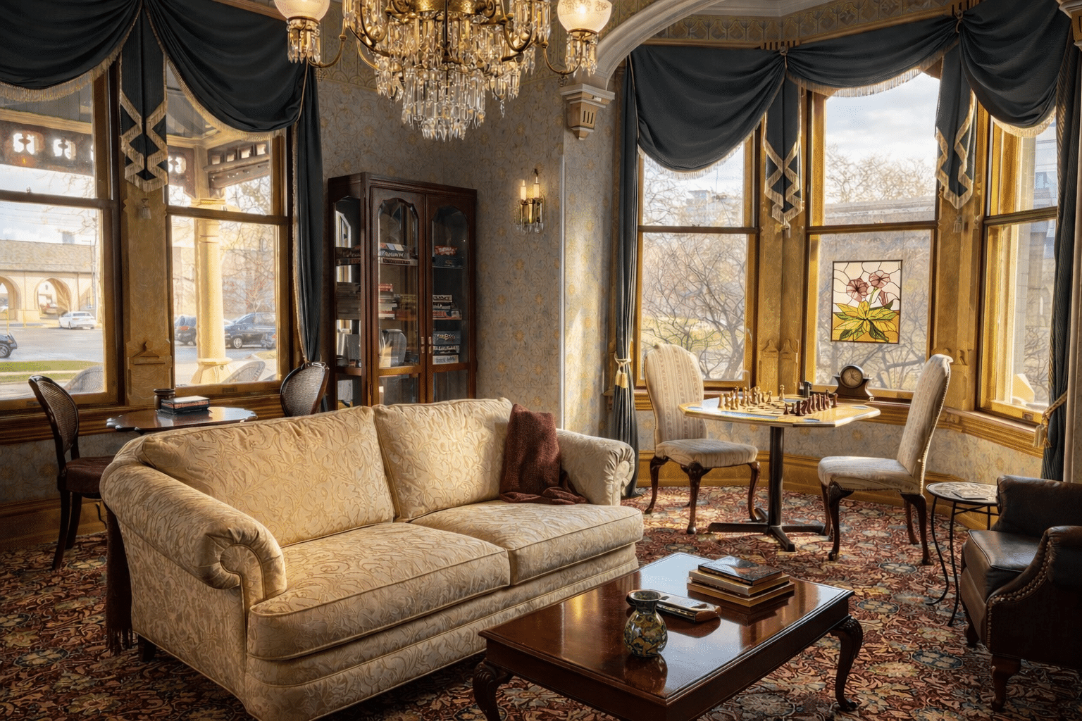 Beyond the luxurious guest rooms, explore the thoughtfully arranged common areas designed for both elegance and comfort. The Parlor at The Kalamazoo House is a peaceful haven, perfect for unwinding after a day of activities. Settle into one of our plush leather recliners for a nap, enjoy quiet moments with a book, or engage in lively conversation with fellow guests.